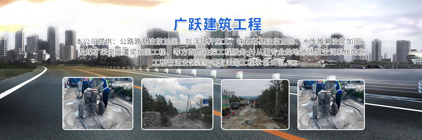 徐州廣躍建筑工程有限公司,公司成立于2010年,有專業(yè)施工人員50人,從事專業(yè)加固注漿施工。 本公司提供:公路路基注漿加固、抗浮錨桿施工、鐵路路基注漿加固、水庫帷幕注漿加固、及煤礦采空區(qū)灌漿加固工程、等方面的鉆探工程服務(wù);并從事專業(yè)的地源熱泵空調(diào)系統(tǒng)的施工和管道安裝連接等有關(guān)的工程承包公司。 公司成立以來一直專注于地質(zhì)鉆井工作,技術(shù)力量雄厚、設(shè)備先進(jìn):擁有專業(yè)的機(jī)械地質(zhì)鉆井精英隊(duì)伍;并具有GSY --150鉆機(jī)30余臺、GSY---200鉆機(jī)20余臺、專業(yè)回填封孔砂漿泵4臺等機(jī)械設(shè)備。公司稟承“優(yōu)質(zhì)的工程、優(yōu)惠的價格、優(yōu)良的售后服務(wù)”的經(jīng)營理念,以“客戶滿意”為原則,著力打造一支高效、專業(yè)、信譽(yù)的工程服務(wù)團(tuán)隊(duì)。 具體服務(wù)項(xiàng)目:工程施工降水井、水源空調(diào)井、地源熱泵井、機(jī)鉆深井(工廠專用井)、石頭井、飲用水井、農(nóng)田井、地基降水處理、大型基坑降水、地下室、車庫以及橋梁注漿加固等業(yè)務(wù)。可用于廠生產(chǎn)用水,機(jī)械冷卻用水和生活用水,用水量可根據(jù)貴公司的需求量身訂做。